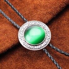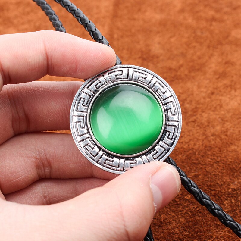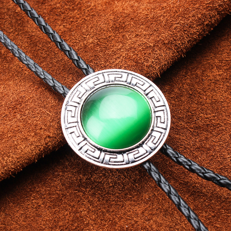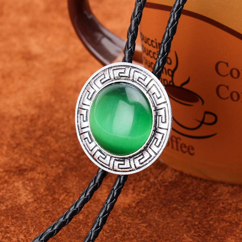 Vintage Western Cowboy Mens BOLO Tie Slide Clip Wall Middle Small Jade PU Leather Rope