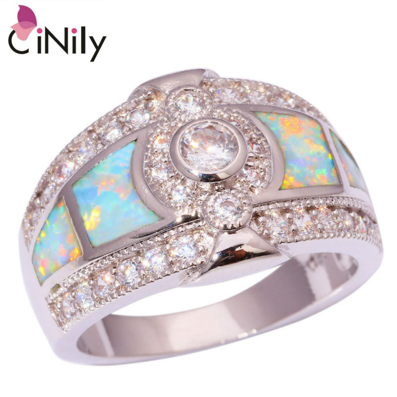 White Fire Opal White Topaz Cubic Zirconia Silver Ring Wholesale & Retail For Fashion Women Jewelry Ring Size 6/7/8/9/10 OJ8528