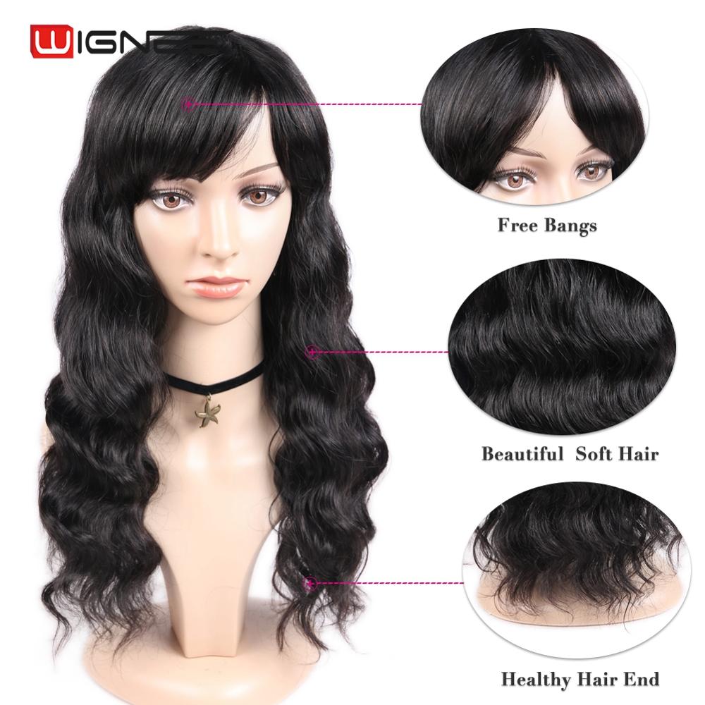 Wignee Remy Brazilian Human Hair Wigs With Free Bangs for Black/White Women Glueless Hair Loose Deep Wave Human Wig For Africans
