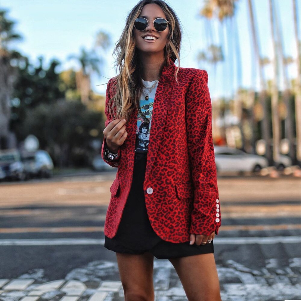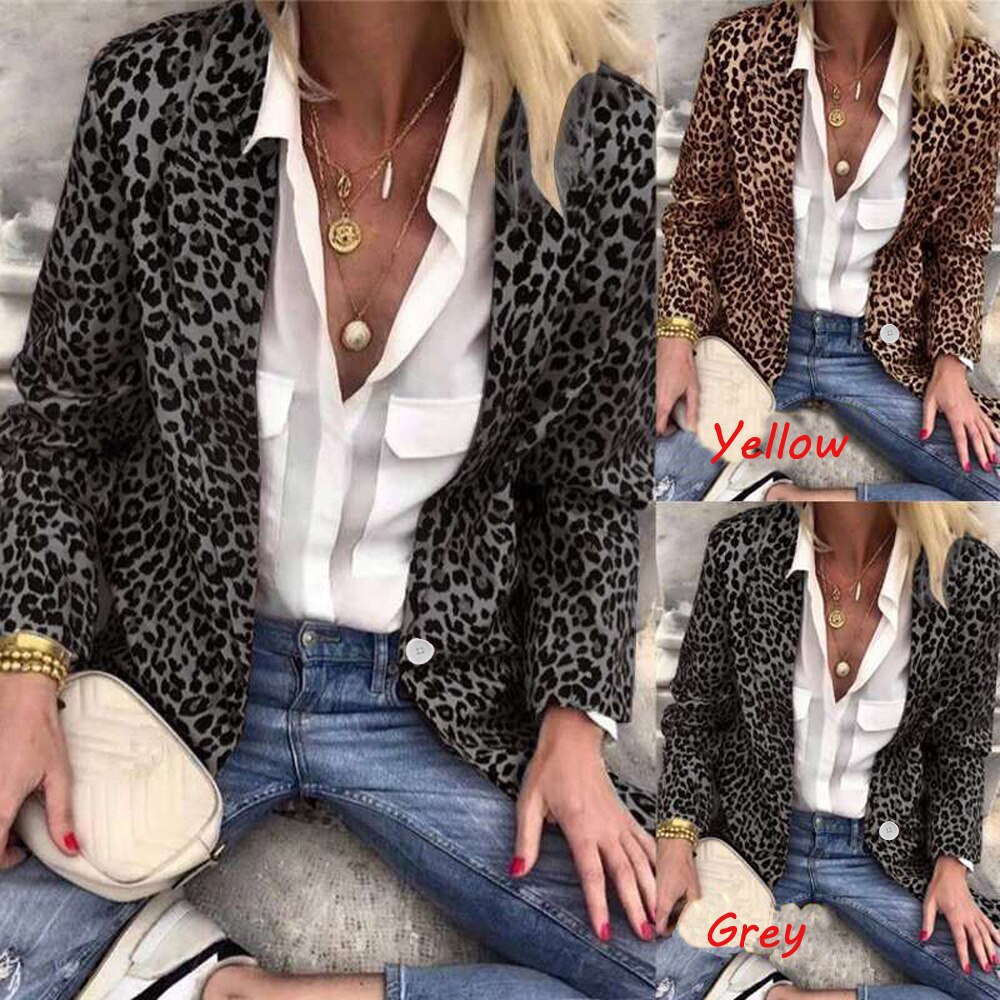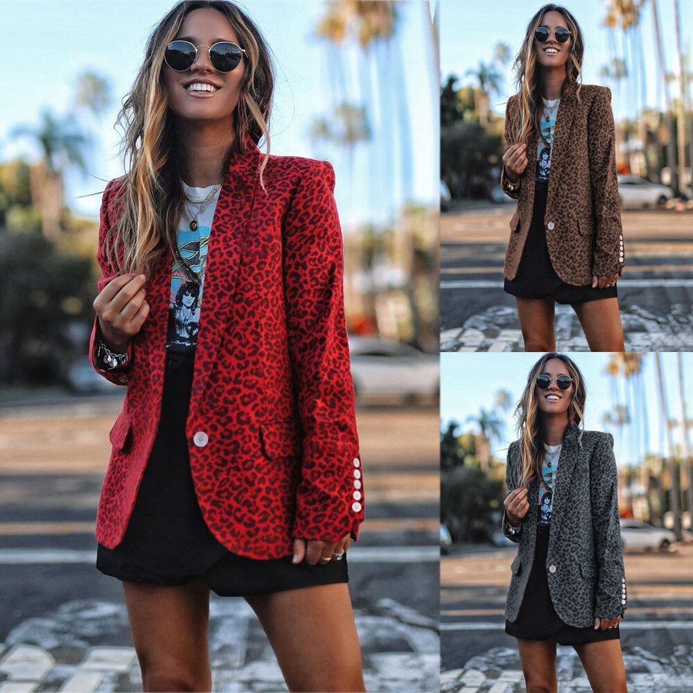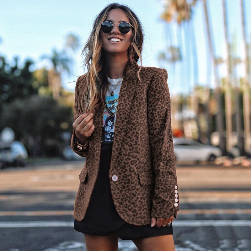 Winter Lapel leopard Print Button Small Blazer Lady Jacket Suit Collar Solid Slim Fit Long Sleeve Single-Breasted Small Jacket