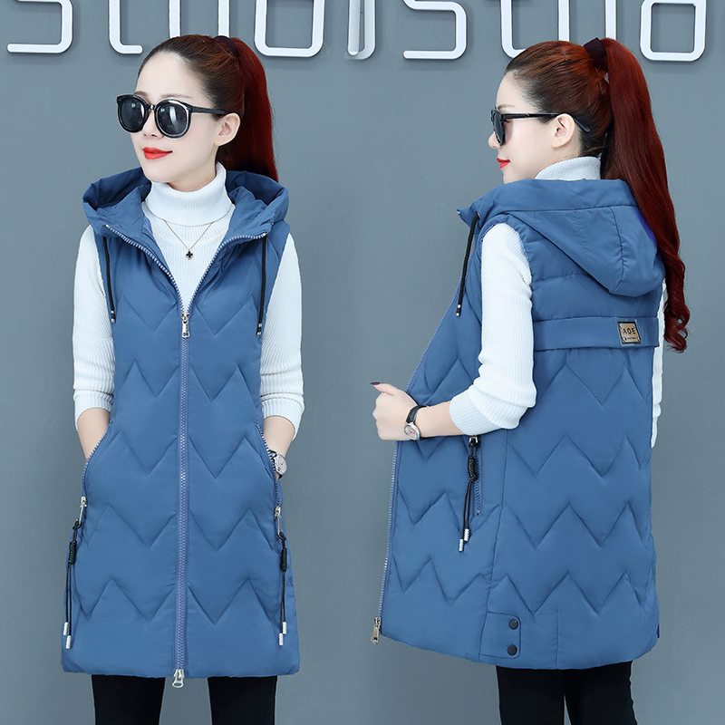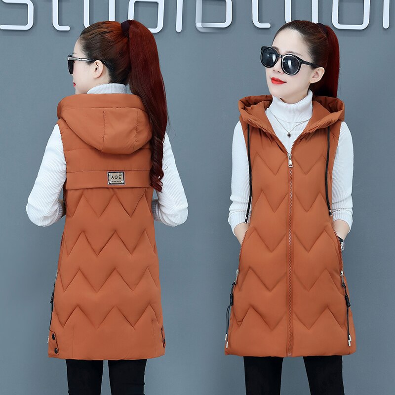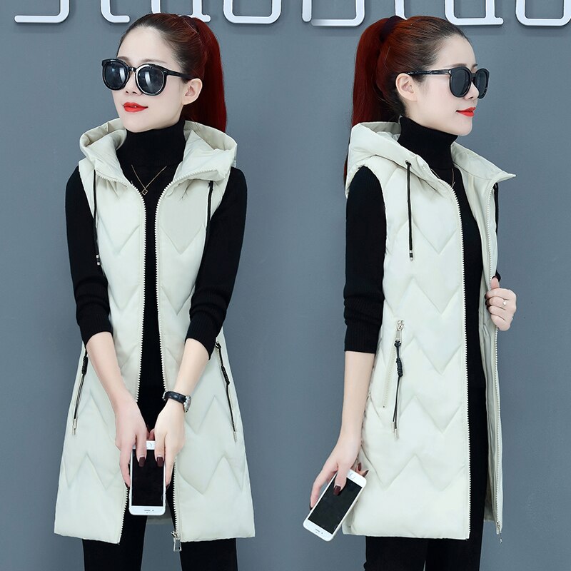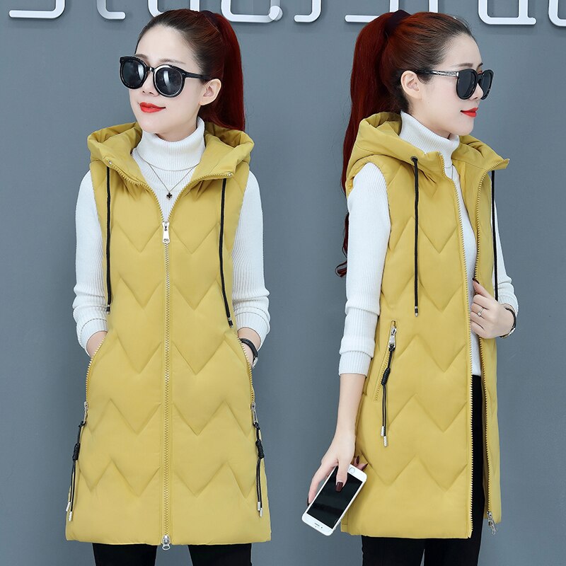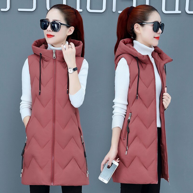 Winter Long Sleeveless Vest Coats Women hooded Slim Cotton Padded Jacket Vests Korean Fashion Zipper Jacket Woman Waistcoat