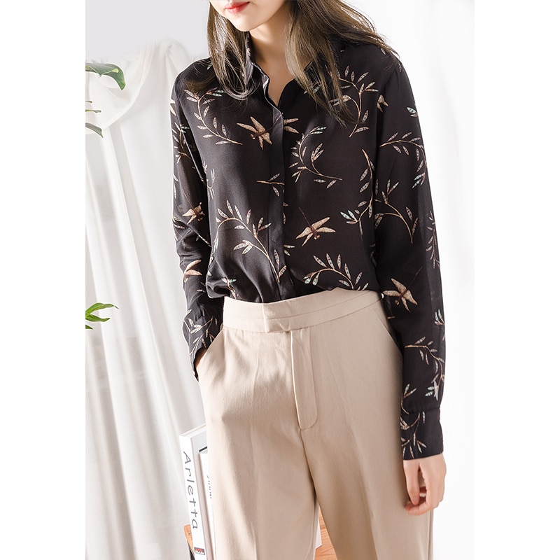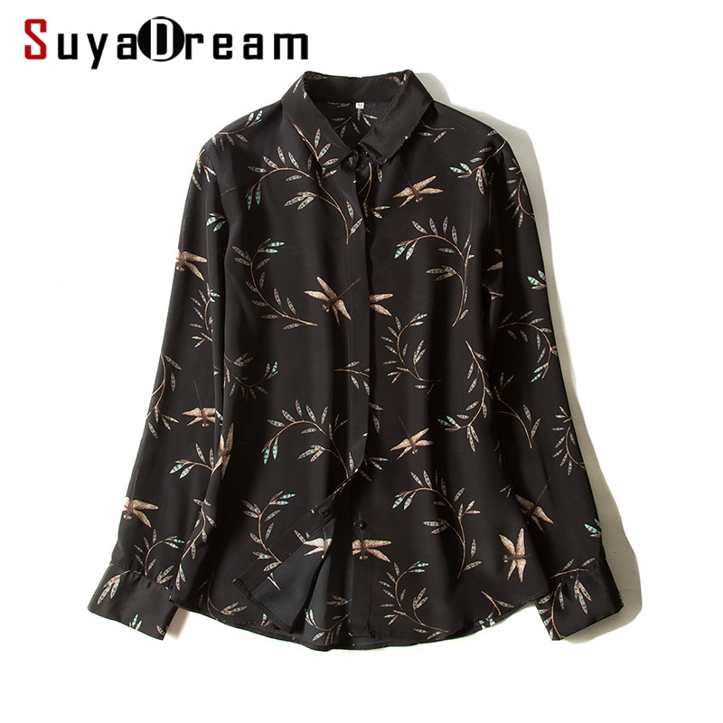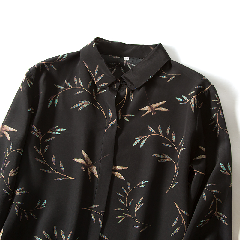 Be the first to review “Women Blouse 100% REAL SILK Crepe Printed Blouse Shirt Office Lady Turn Down Collar Blouses 2019 Fall Winter Black Shirt”