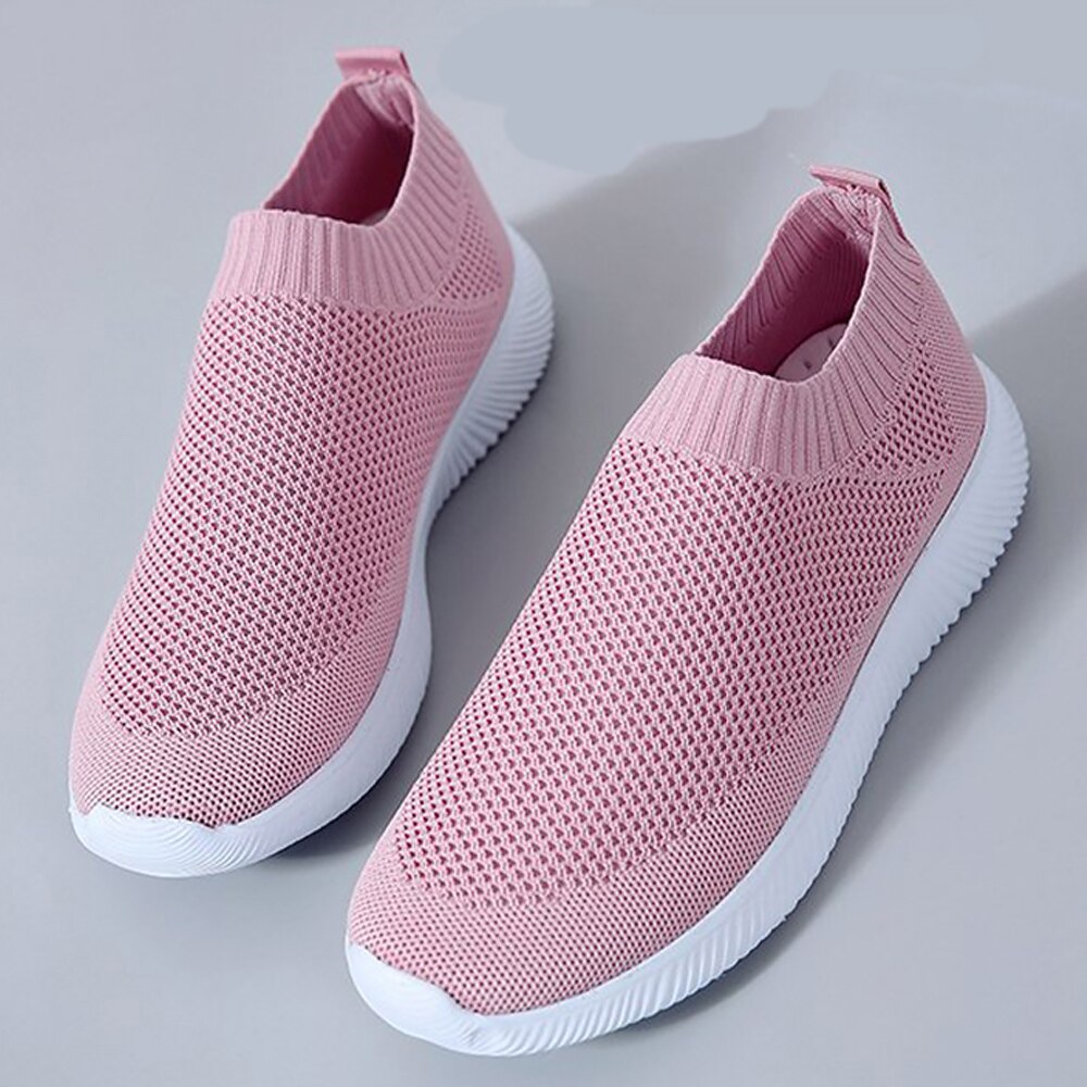 Women Casual Shoe Spring Slip On Solid Air Mesh Non Slip Sock Shoes Girls Shallow Rubber Wedges Sneakers Woman Plus Size 43