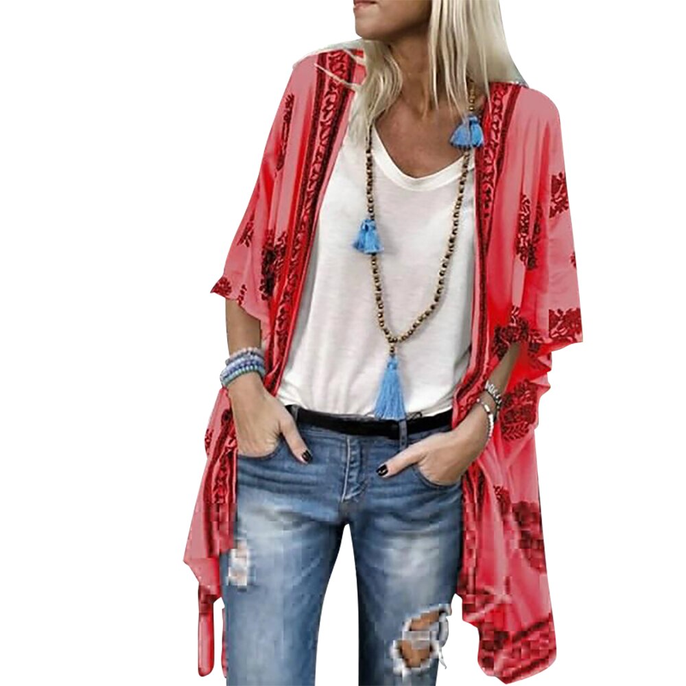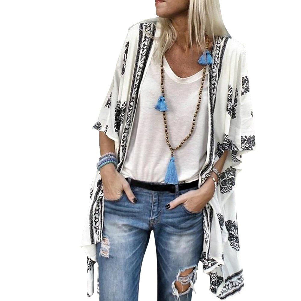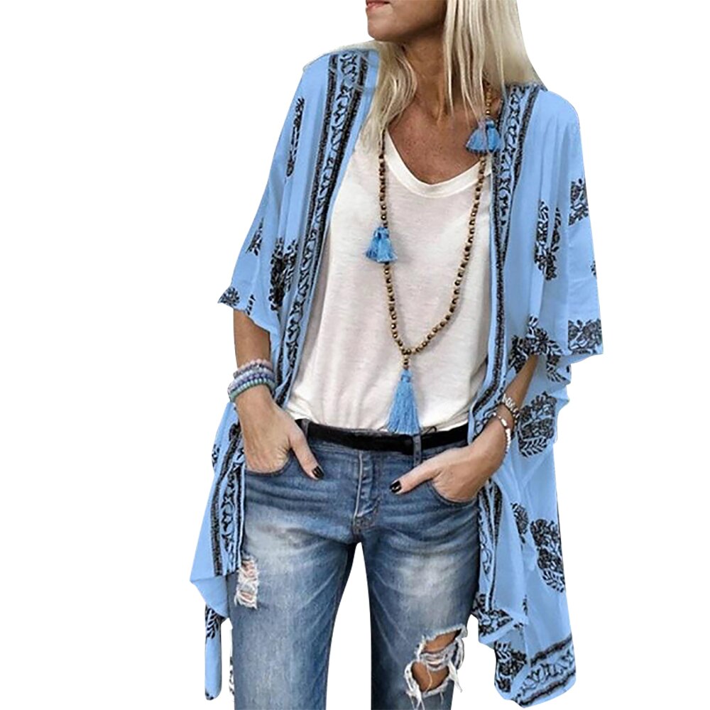 Women Casual Vintage Kimono Cardigan Ladies 2019 Summer Long Crochet Chiffon Kimono preto Loose flora printed Blouse Tops D30 –
