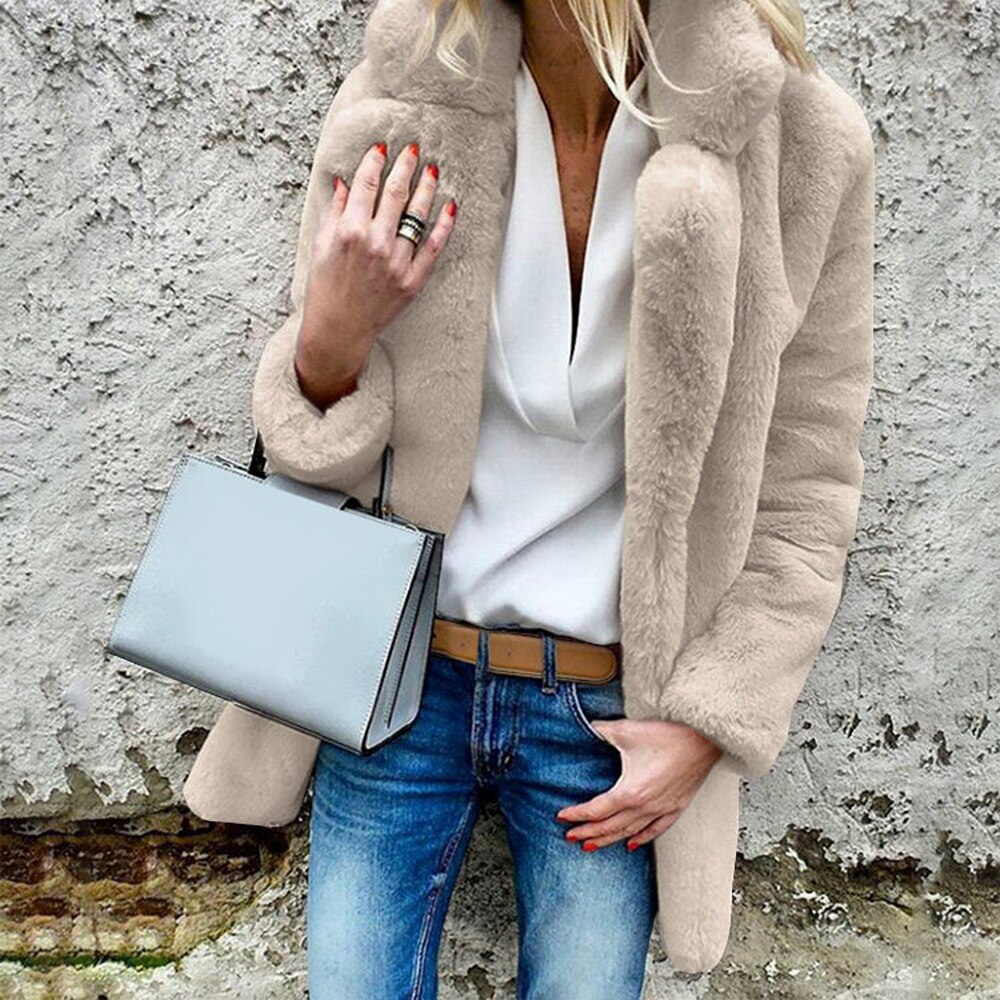 Women Faux Fur Coats Winter Solid Fashion Open Point Outwear Female Luxury Long Sleeve Warm Thick Fluffy Jacket Coat