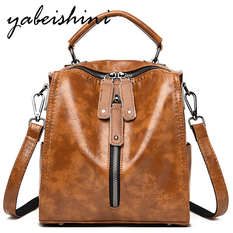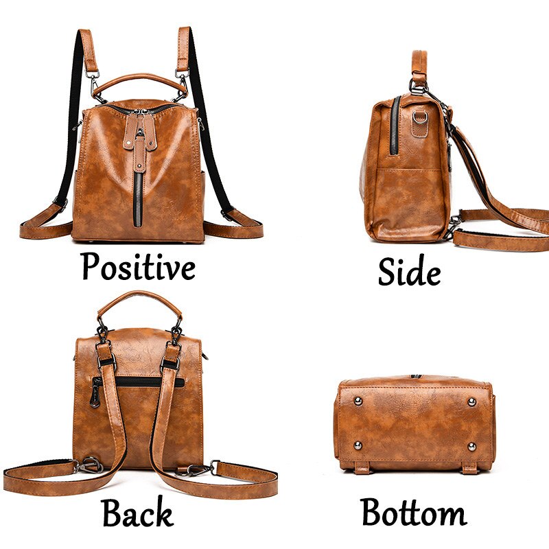 women Multifunction Oil wax Leather Backpacks 7 colors Fashion women Backpack handle Detachable School Bags For Girls Sac a Dos