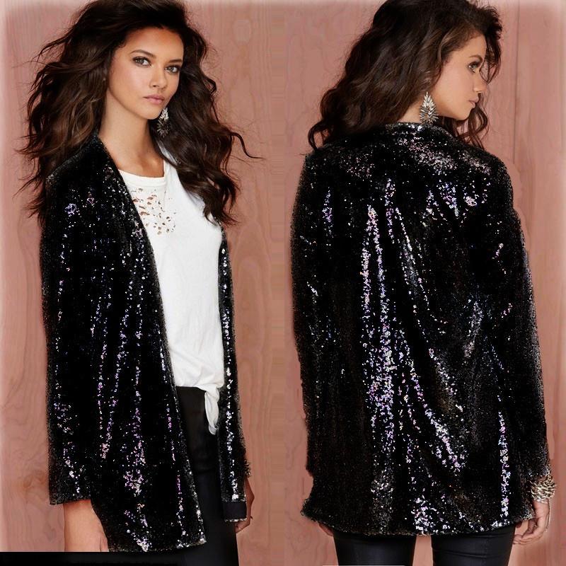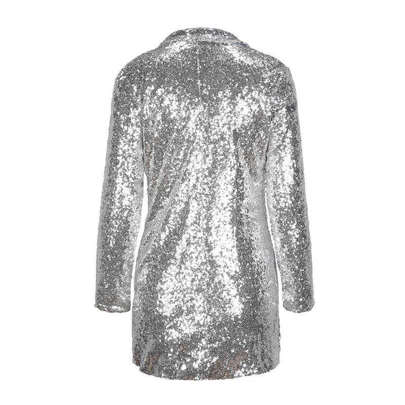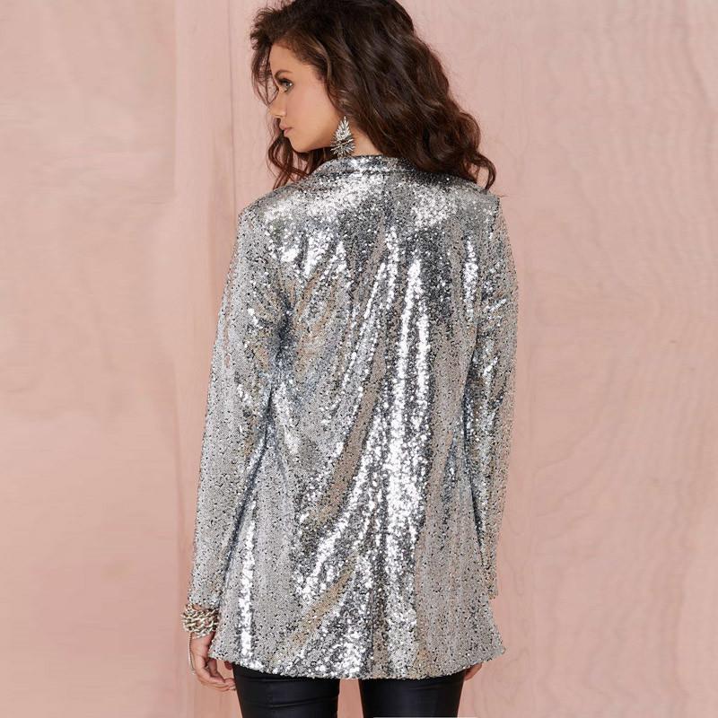 Women Sequin Blazers Jacket Elegant Gold Silver Black Long Sleeve Suit Coat Night Club Glitter Shiny Outwear