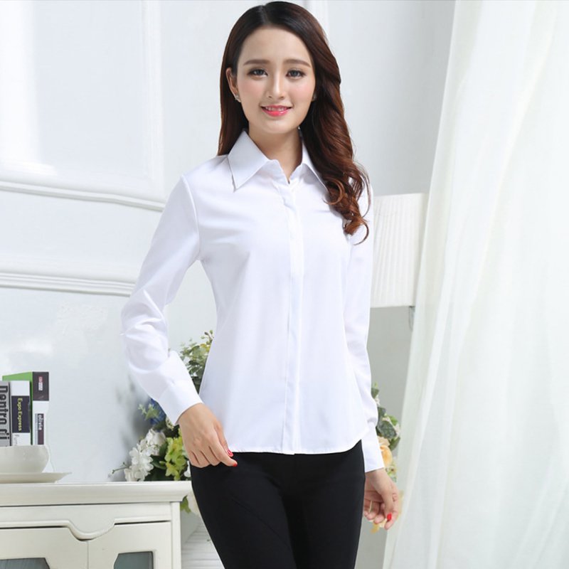 Women Single Breasted Tops And Blouses Solid Office Lady Women Shirts Turn-Down Collar Women White Blusas Mujer 2019 Plus Size