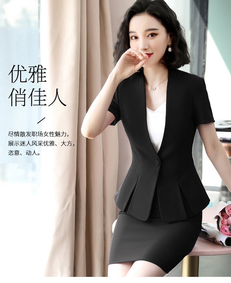 Women’s Elegant Formal Business OL Spring Summer Long Sleeve Slim Blazer and Skirt Suit Office Ladies Work Wear Blazers Jacket