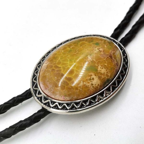 Yellow Granite Stone Mens BOLO Tie PU Leather Rope Vintage Western Cowboy