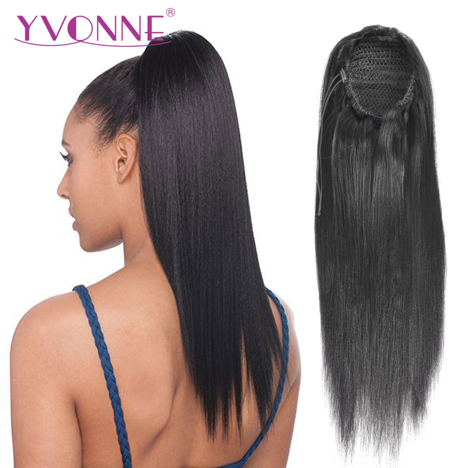Yvonne Brazilian Yaki Straight Ponytail Human Hair Clip In Extensions Virgin Hair Drawstring Ponytail 1 Piece Natural Color
