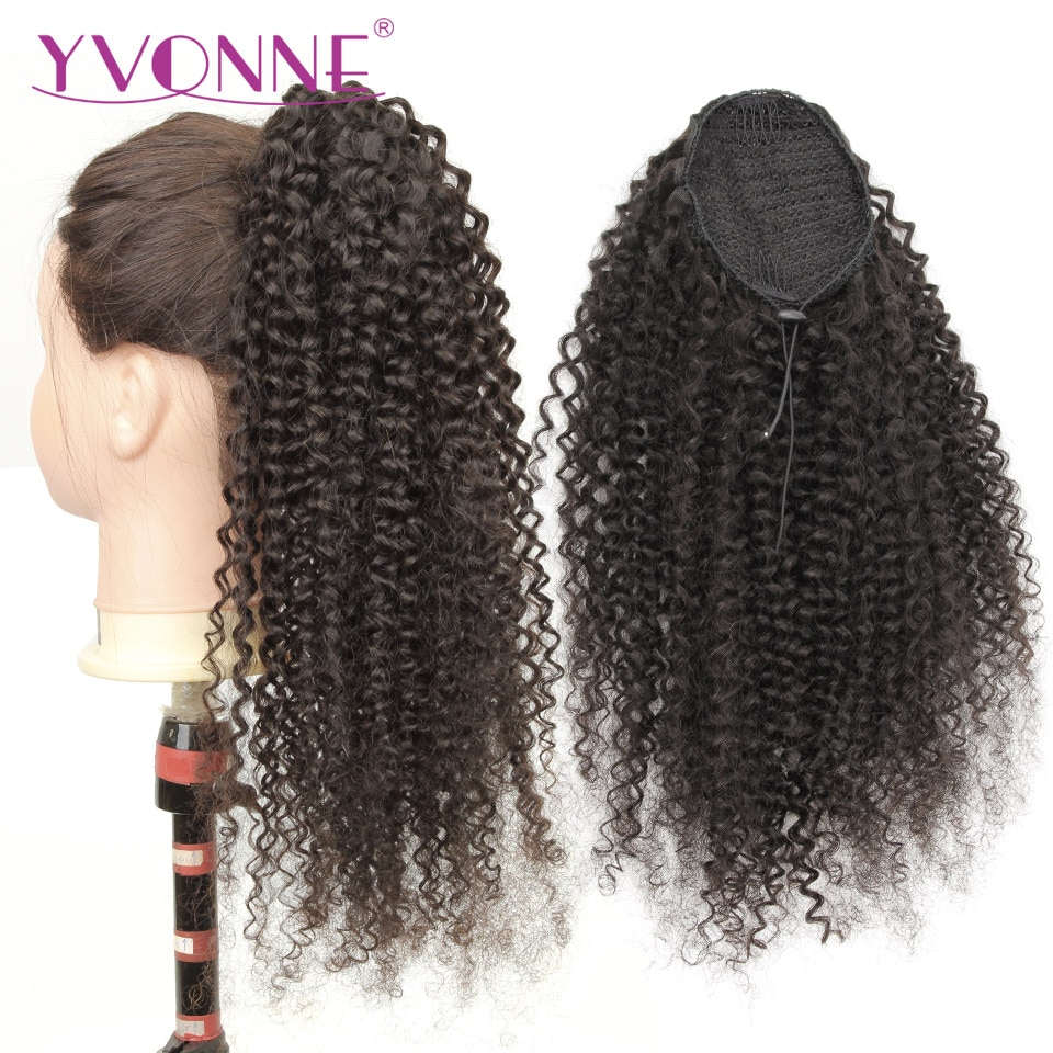 [Yvonne] Malaysian Curly Drawstring Ponytail Human Hair Clip In Extensions High Ratio Brazilian Virgin Hair Natural Color