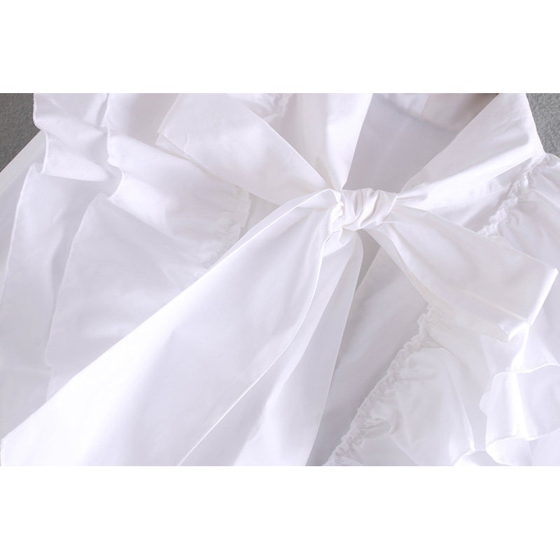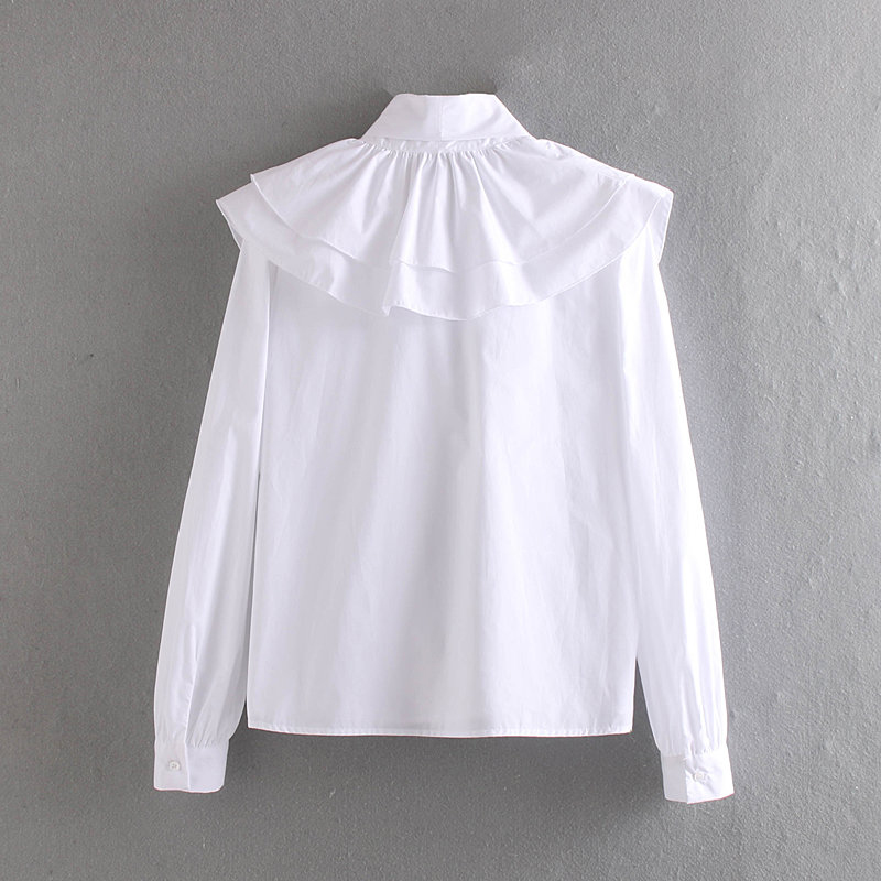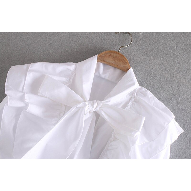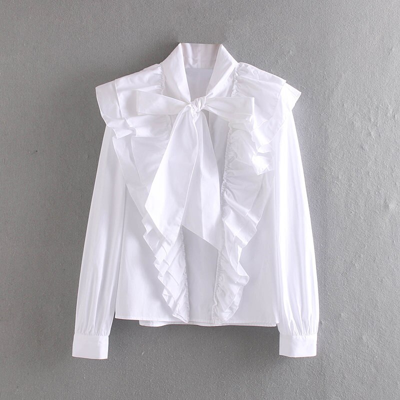 za 2019 women chic bow tie ruffle elastic white blouse back zipper ruffles long sleeve women shirt office wear female shirt top