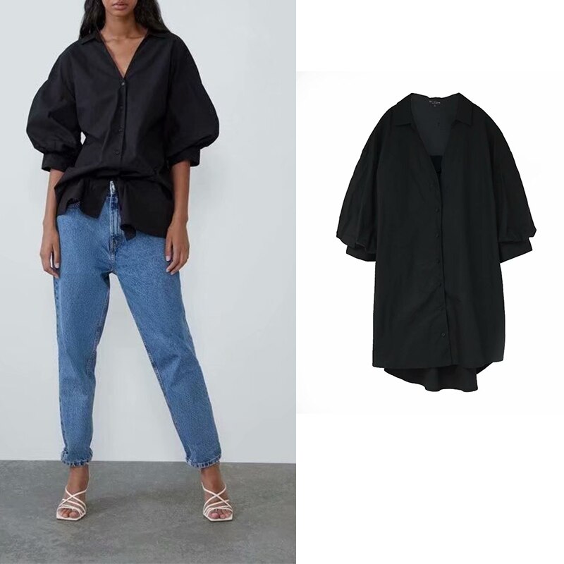ZA 2019england vintage oversize loose poplin blusas mujer de moda autumn long shirt women womens top and shirt plus szie