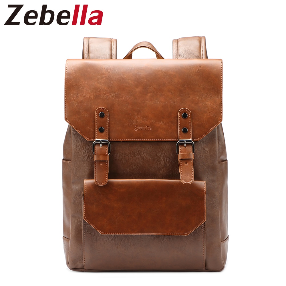 Zebella Solid Vintage PU Leather Backpack Women Men Laptop Bagpack Zipper & Hasp School Bags For Teenagers mochilas femininas
