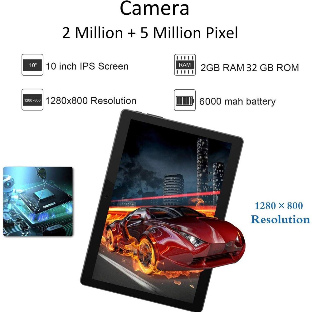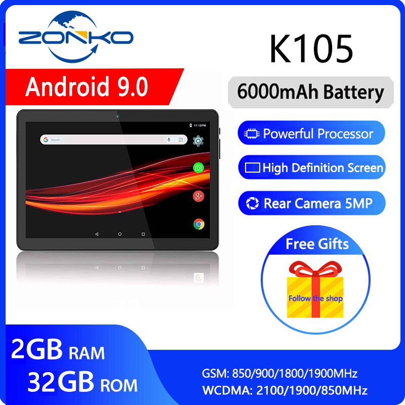 ZONKO 3G Phone Call Tablet PC 10 inch Tablet Android 9.0 Sim Card Tablets 2GB RAM 32GB ROM 1280*800 IPS Dual Camera WiFi GPS